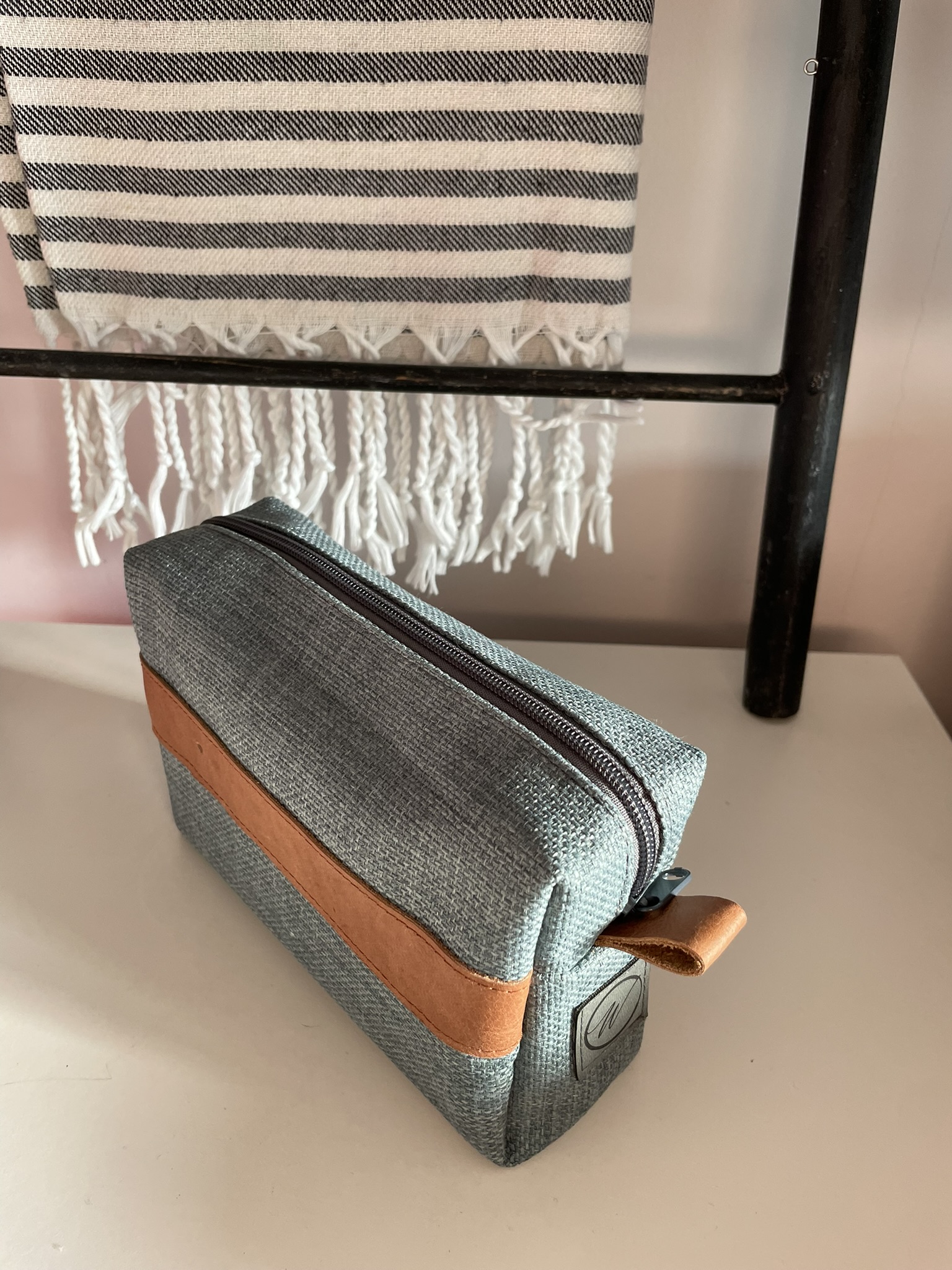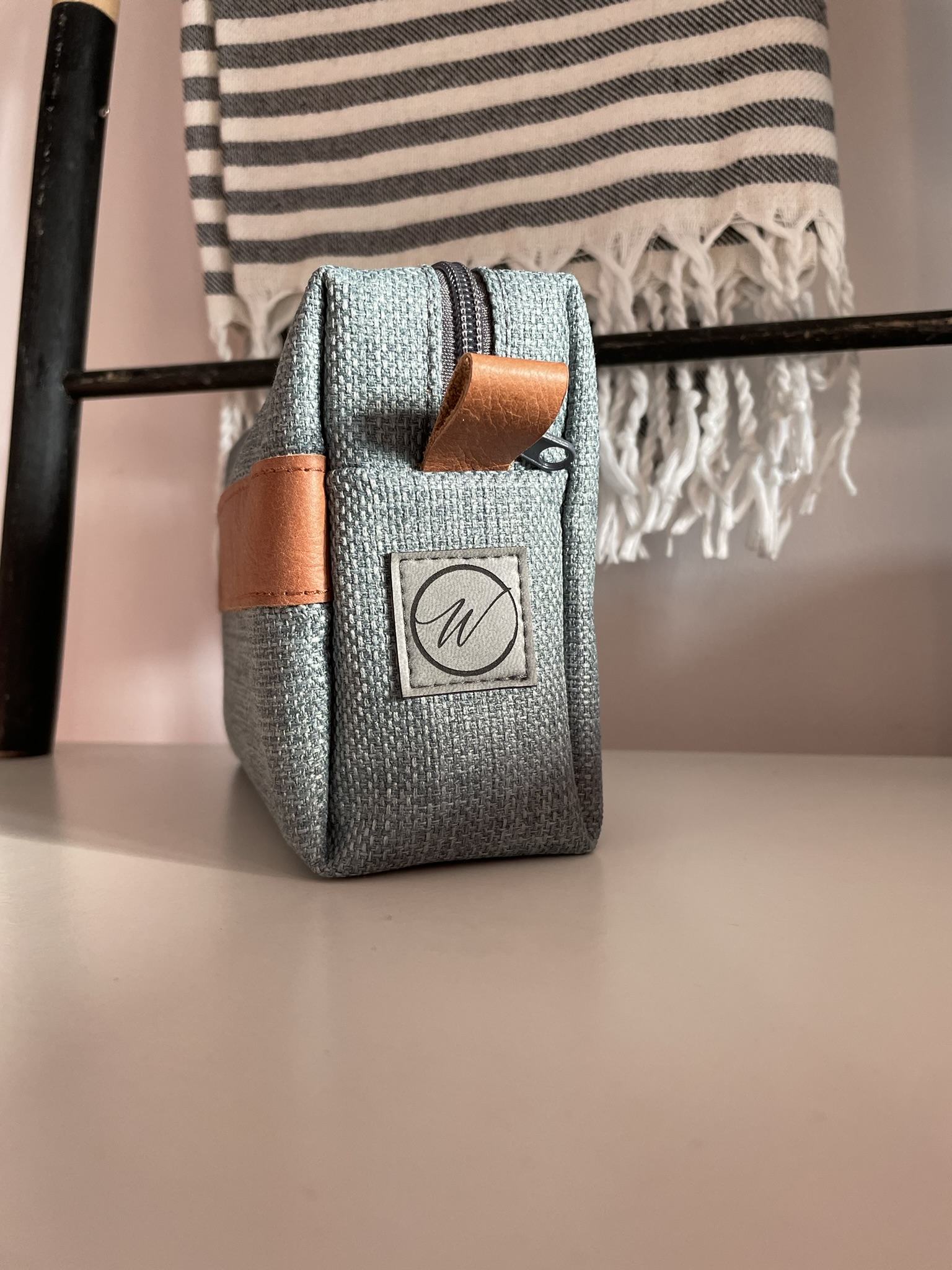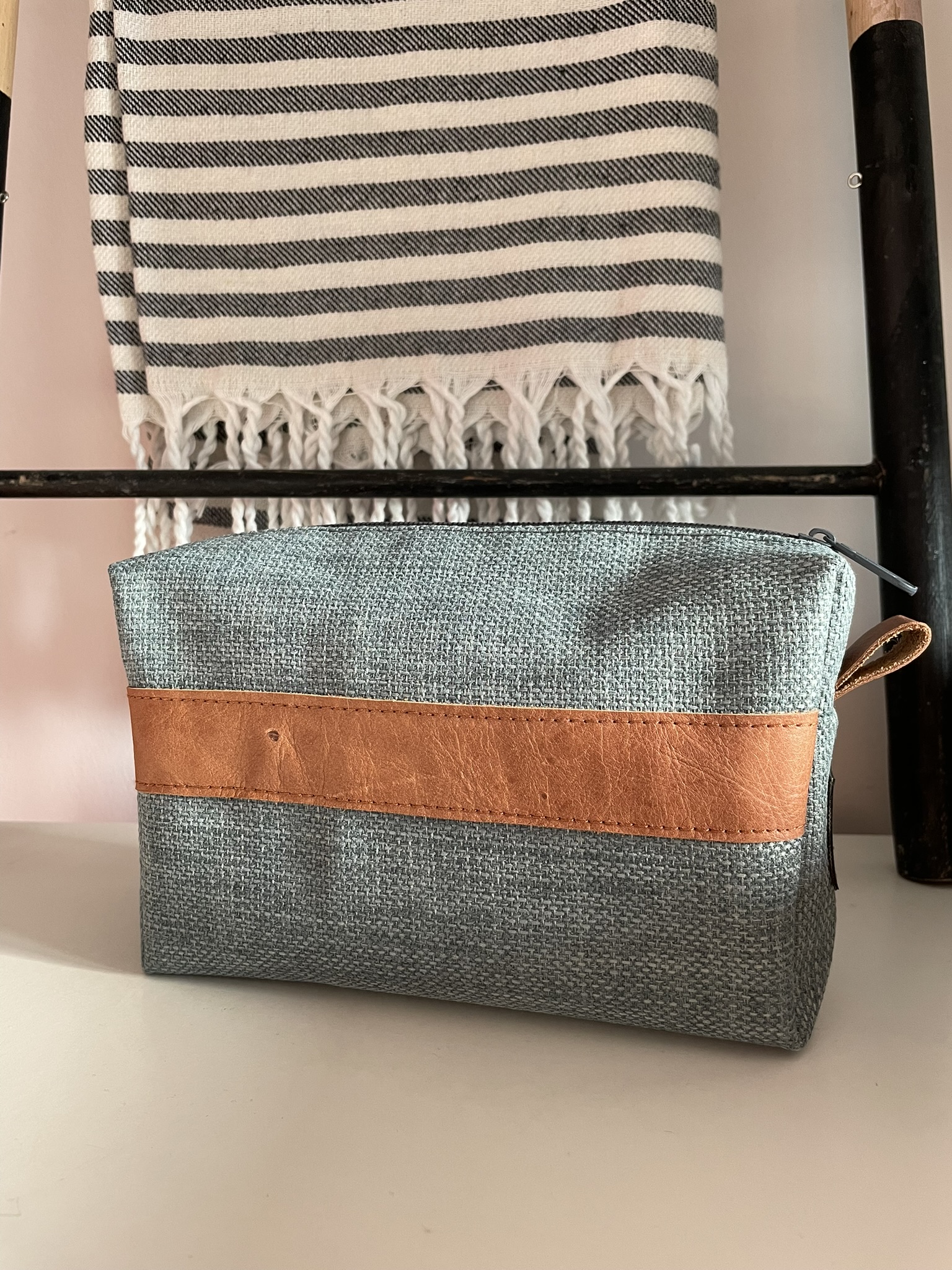 Minimalistyczna, stylowa i praktyczna – kosmetyczka „Kostka” to unikalny dodatek, który świetnie sprawdzi się w codziennym użytkowaniu i podróży. Każdy egzemplarz jest ręcznie szyty z trwałych tkanin tapicerskich, a ozdobny pasek z naturalnej karmelowej skóry dodaje jej wyjątkowego charakteru.