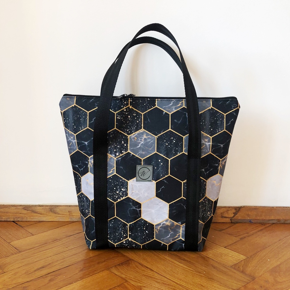 Długie uszy sprawiają, że można ją wygodnie nosić. Wykonana z materiału wodoodpornego, zarówno w środku jak i na zewnątrz. Z małą otwarta kieszonką w środku. Usztywniana, dzięki czemu można ją wygodnie postawić w różnych miejscach.