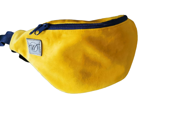 Welurowa nerka w energetycznym żółtym kolorze, w komplecie z małą kosmetyczką. Razem tworzą niesamowity duet. Kosmetyczka może być doczepiona do paska lub używana niezależnie.